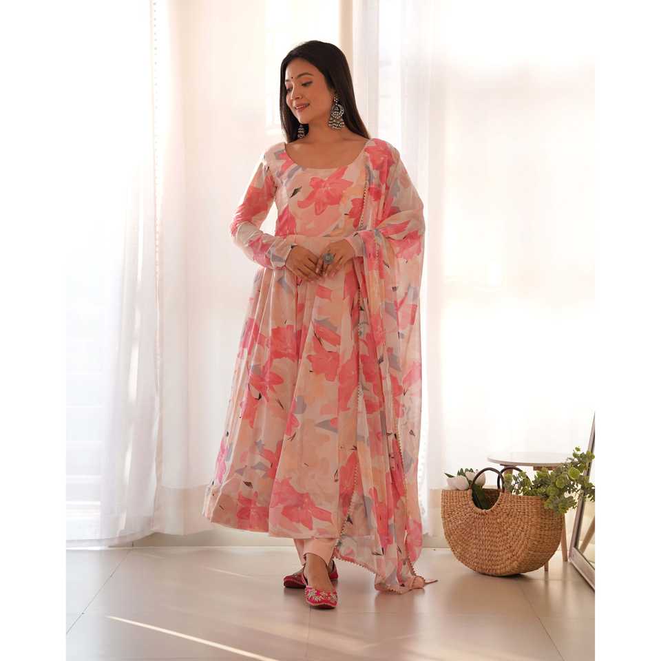 Hermoso conjunto de vestido de talla XS Anarkali y Dupatta, ropa de fiesta con estampado floral para mujer