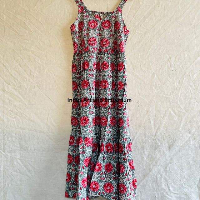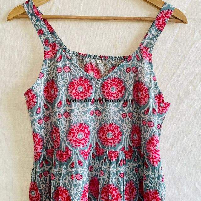 Hermoso Vestido Estampado Floral en Bloques de Algodón, Vestido para Uso Casual, Vestido Estampado a Mano