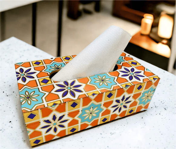 Hermosa caja de pañuelos de madera impresa para mesas de cocina y alfombrillas y almohadillas de encimera Categoría de producto