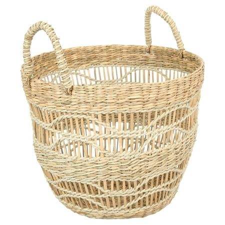 Hermosa cesta de ratán con acabado natural hecho a mano, ideal para casa de campo rústica Boho o interiores costeros