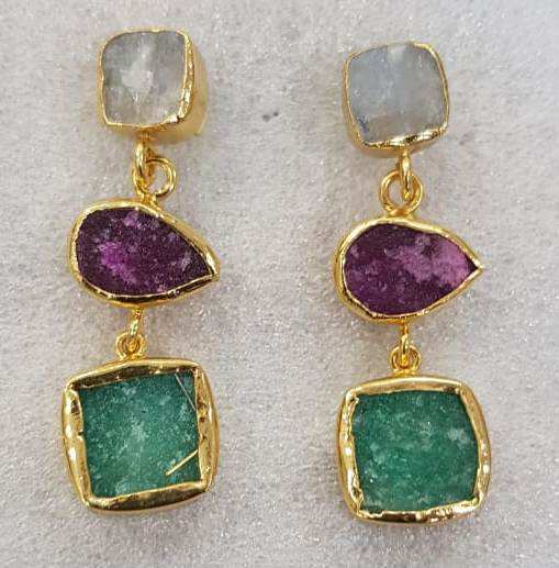 Pendientes de GEMA de Aventurina color blanco, arcoíris, rosa, rubí y verde, aretes colgantes chapados en oro, joyería para regalos