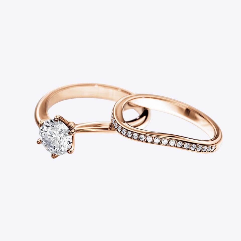 Ventaja:Forma de onda diamante apilamiento anillo de oro