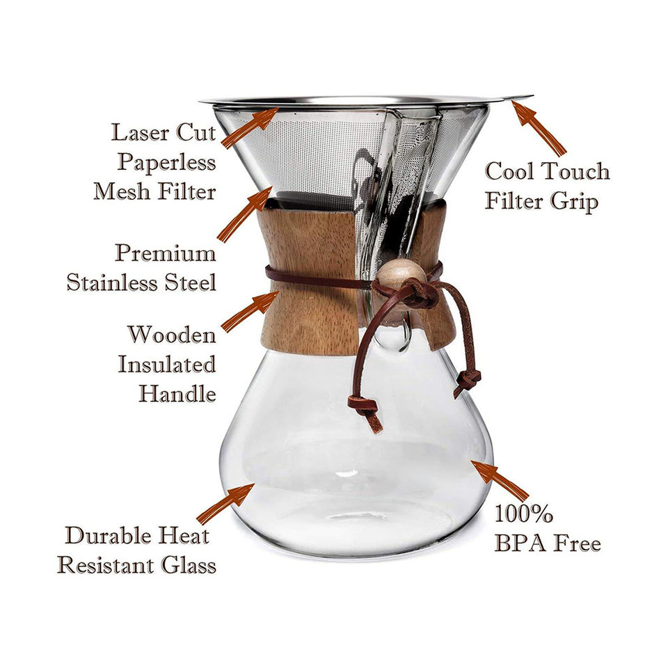 Bellamente diseñado Glass Drip Coffee Coador Maker 10 Cup De Vidrio Coador Cafe Pour Over Chemex con cuello de madera Collar Wrap