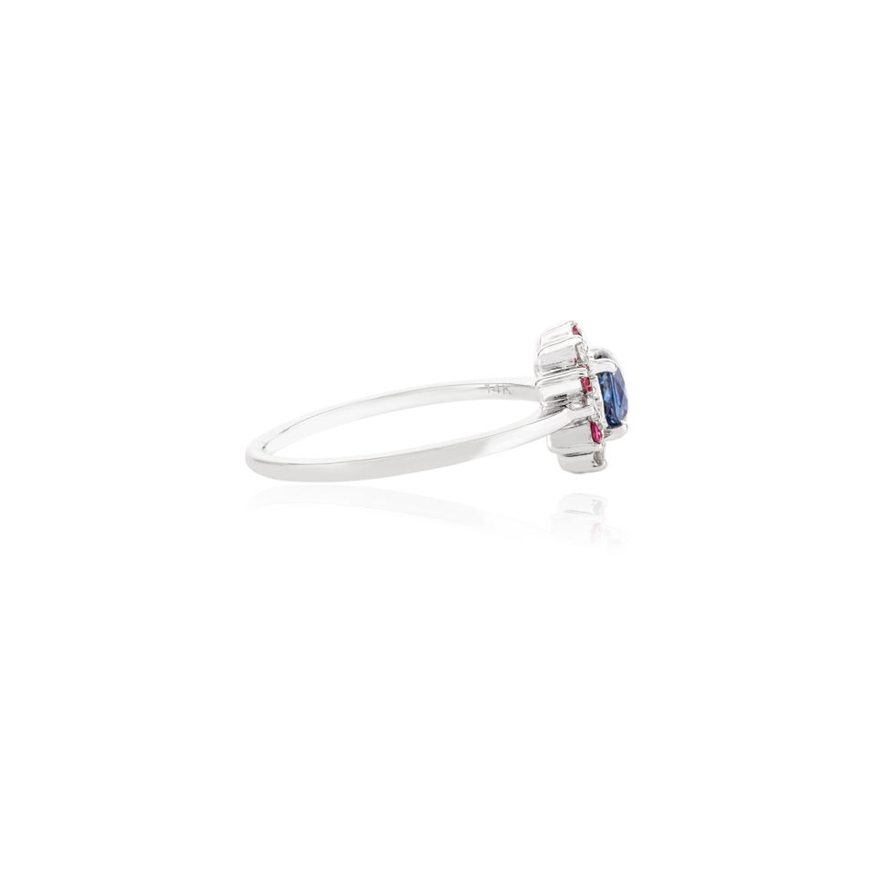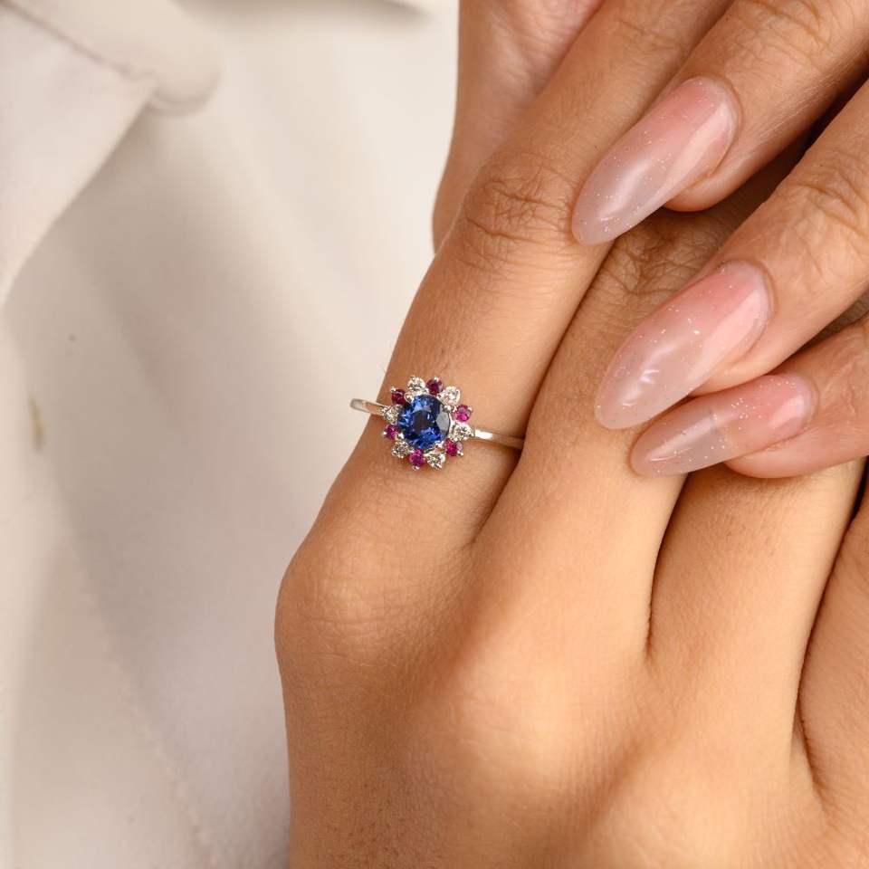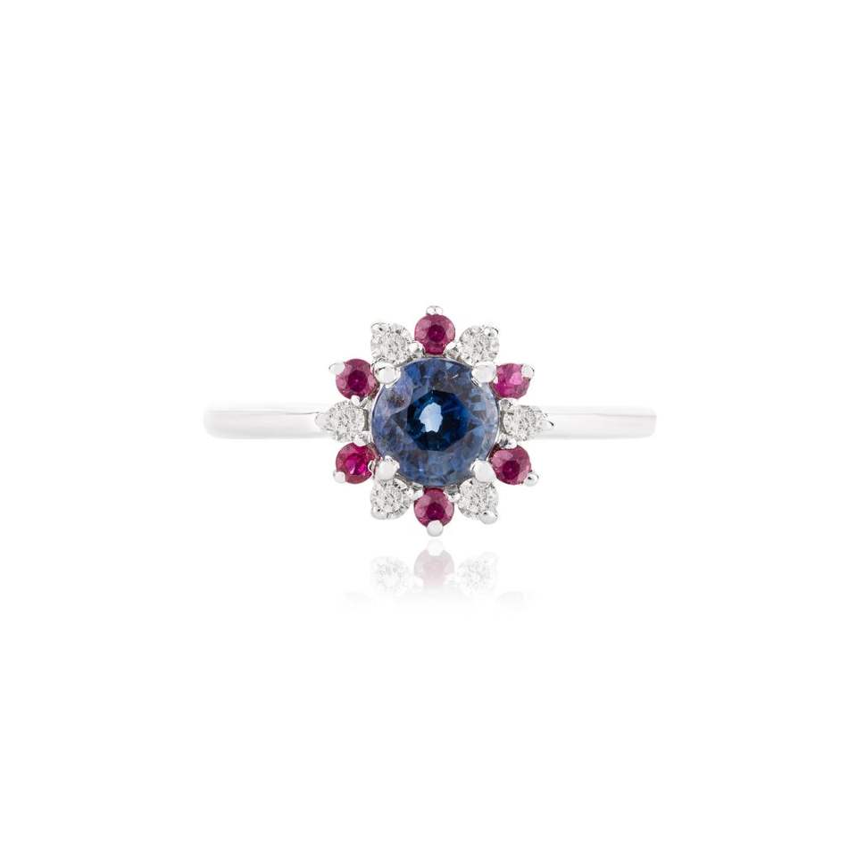 Piedra:Zafiro azul natural, rubí y diamante