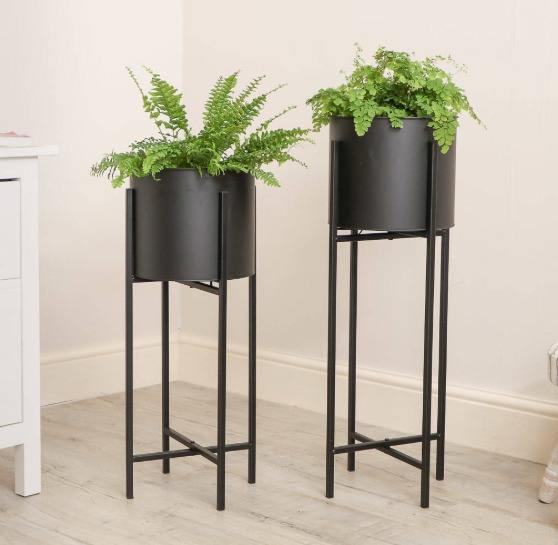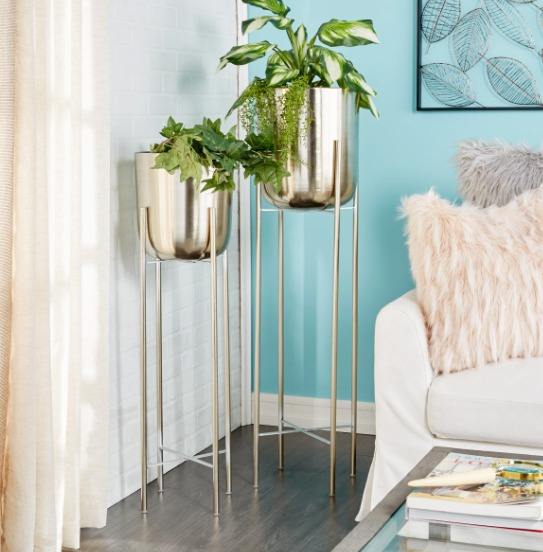 Macetas de metal hechas a mano modernas bellamente elaboradas en colores dorado, plateado y negro, disponibles en elegante brillante o elegante