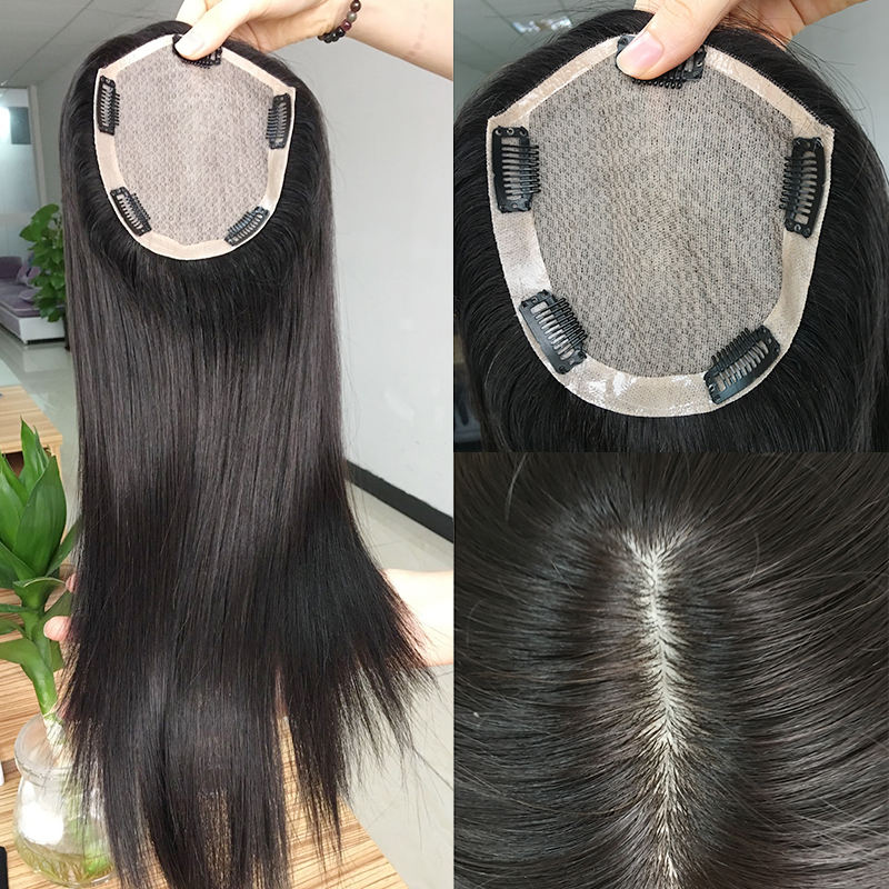 Recto, Topper del cabello humano, Tupé del pelo de las mujeres, Tupé de seda de la baseEstilo