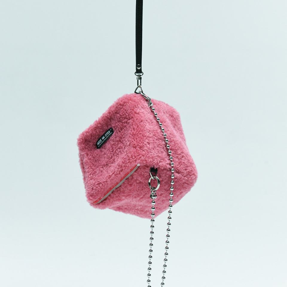 Bolso Bandolera Rosa de Lana con Cadena de Cuentas Metálicas, Bolso Cuadrado para Teléfono, Ideal para Viajes