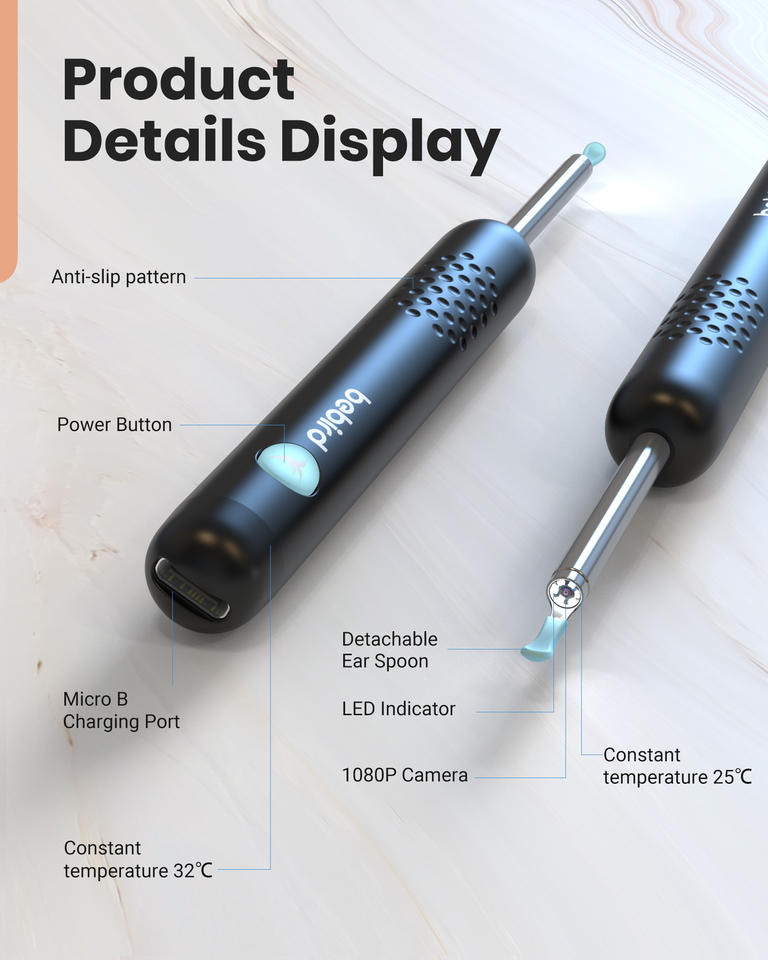 Bebird Smart Visual Ear Cleaner Stick con microscopio USB inalámbrico Cámara de limpieza de oídos Otoscopio Digital Con Pantalla