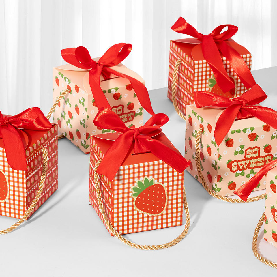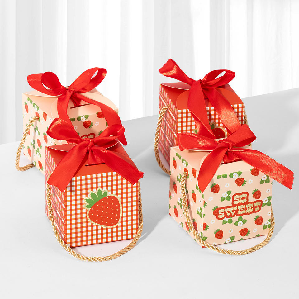 Caja de papel de embalaje de regalo con diseño de fresa portátil Becan para bolso caja de regalo de cumpleaños de recuerdo de San Valentín