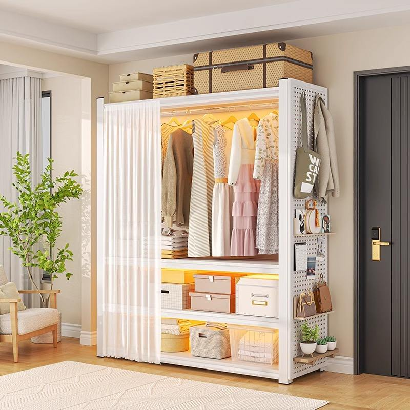 ElegirColor: Blanco-3 capas (Holeboard+percha para ropa+cortina antipolvo)