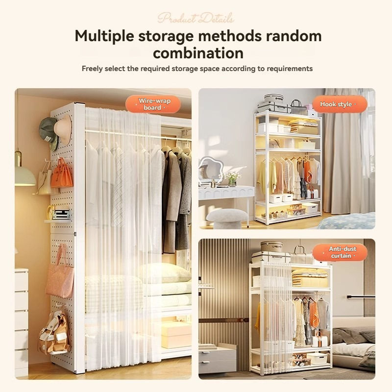 Perchero ajustable para dormitorio, armario de acero independiente, fácil instalación, estante de almacenamiento para ropa y sombreros