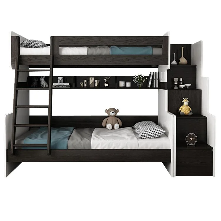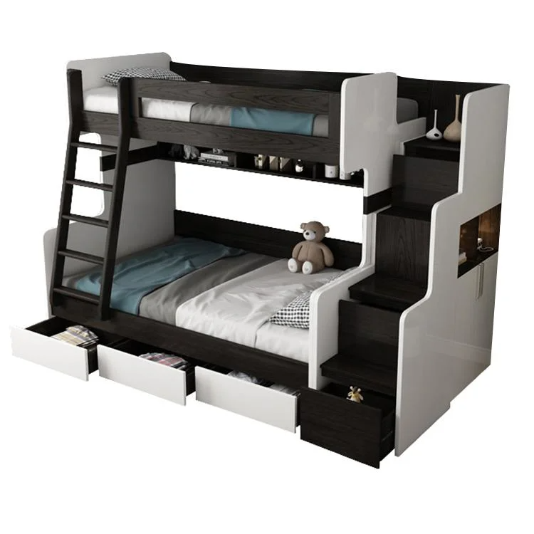 Litera rústica de madera maciza de alta calidad para dormitorio con escalera de cajón para uso doméstico
