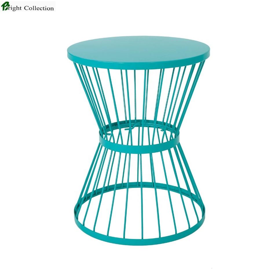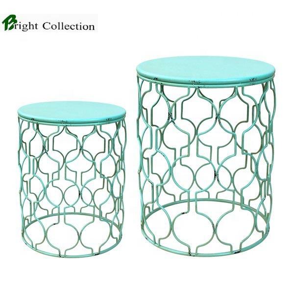 Mesita de noche pequeña de hierro forjado, mesa redonda de metal roja antigua, barata