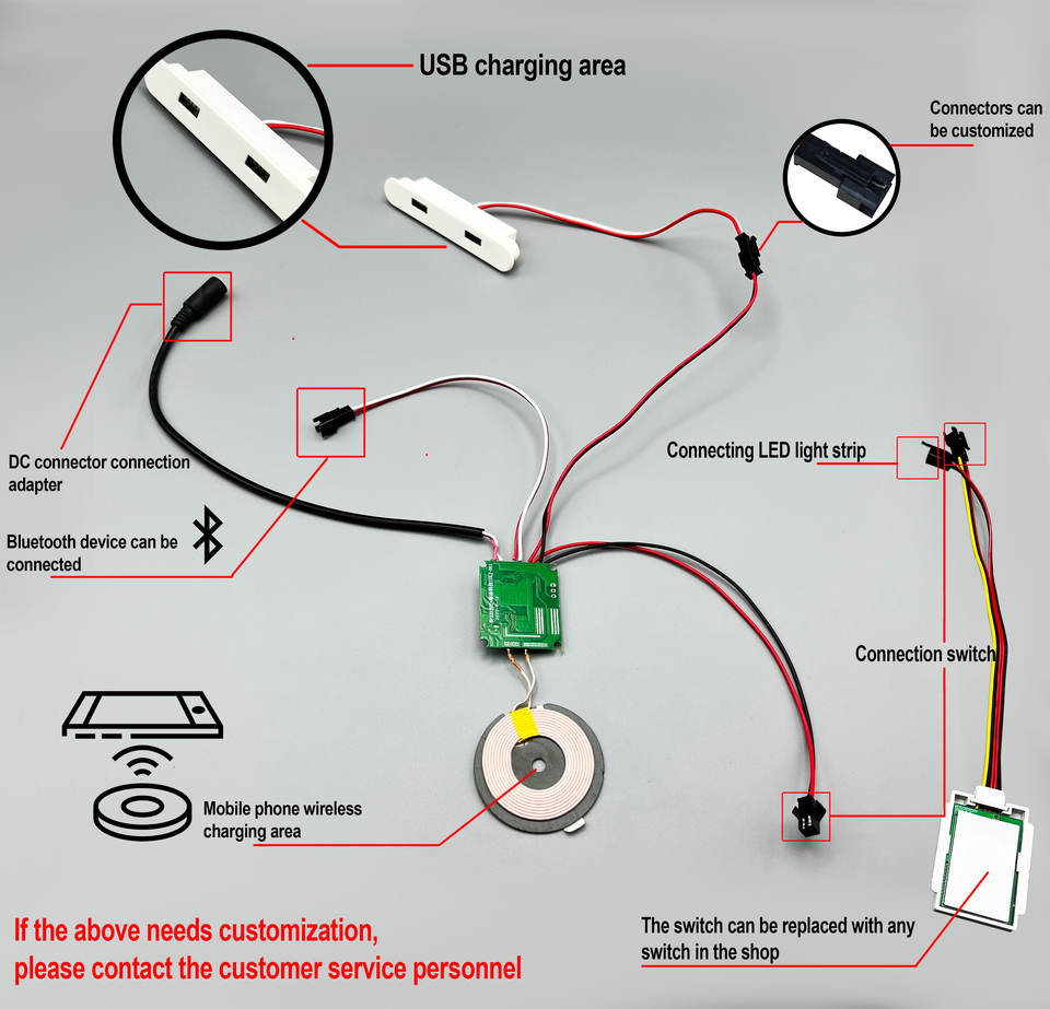 Carga USB/Inalámbrica/Tira LED