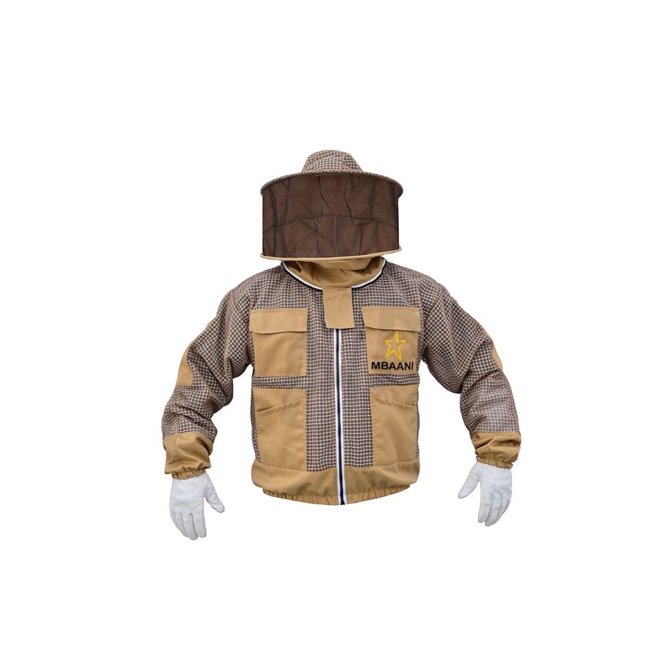 Chaqueta de abeja de tres capas color marrón con velo redondo