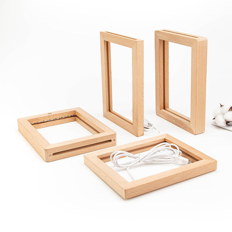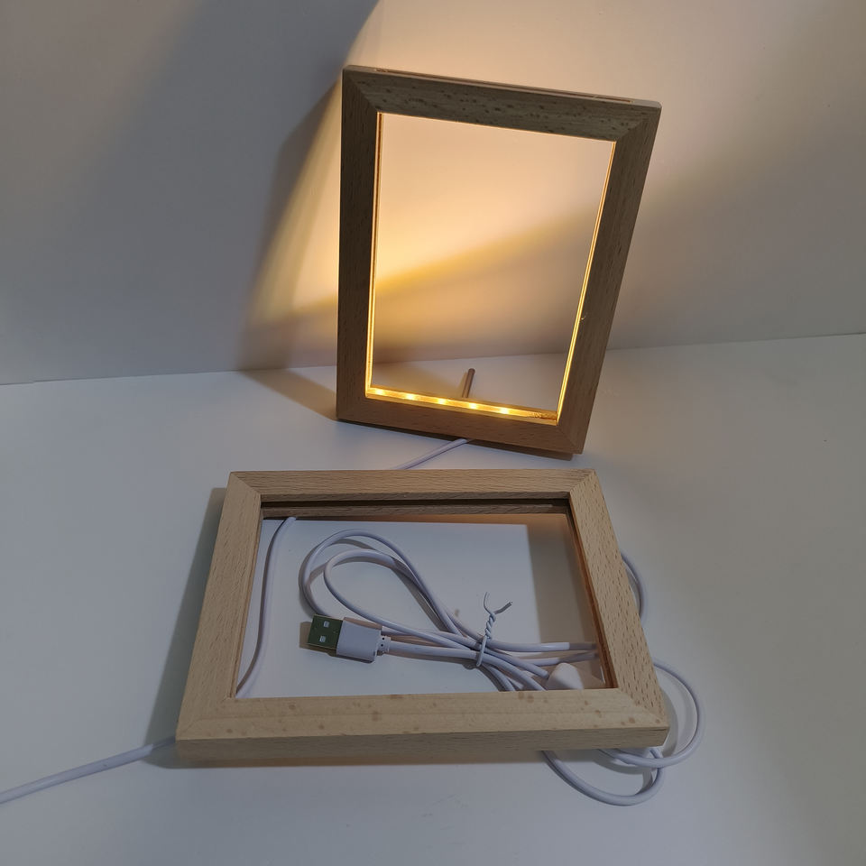 Marco de fotos de madera de haya luz LED USB 3D Luz de simulación dormitorio marco de fotos luminoso luz nocturna marco de fotos adornos artesanías