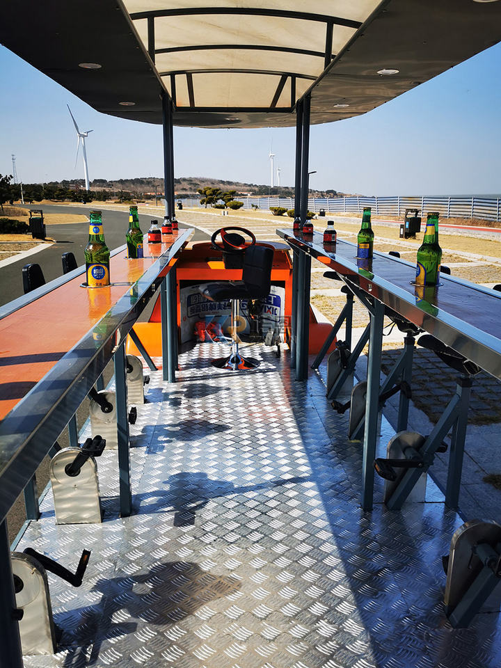 Uso:Bicicleta de cerveza con techo abierto y toldo