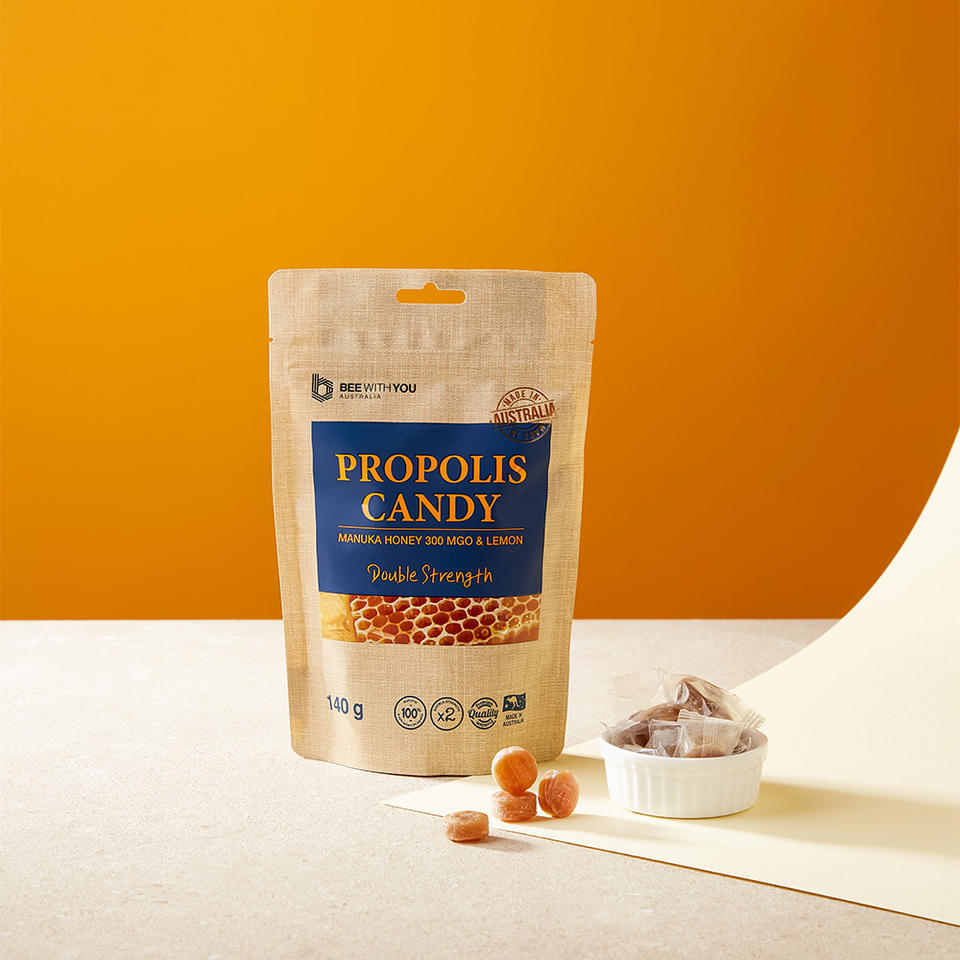 [Beewithyou] Caramelos de Propóleo 140g (Doble Potencia) Cuidado Diario de la Garganta Caramelos Inmunológicos con Propóleo Australiano Bienestar Natural