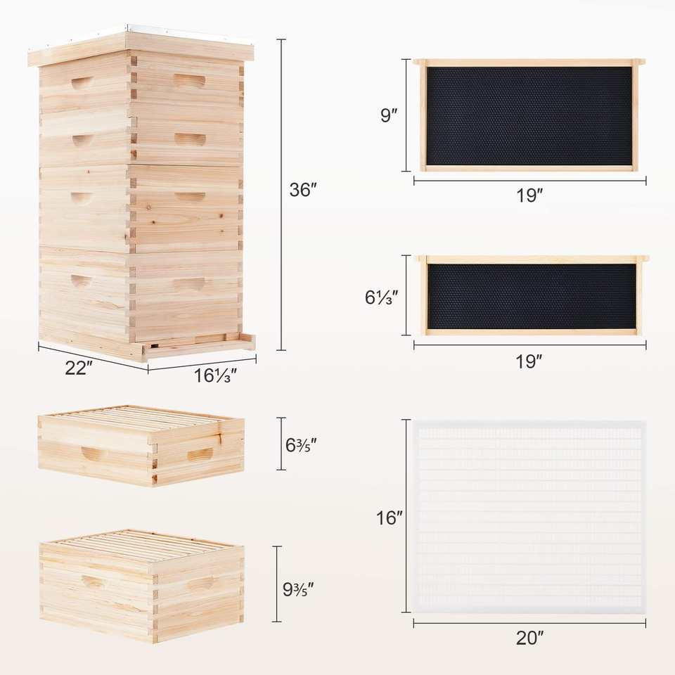 Kit de Inicio para Apicultura con Colmena Langstroth de 10 Cuadros, Apto para Principiantes, Colmena de Madera Natural con Cuadros y Todos los Accesorios, Duradera