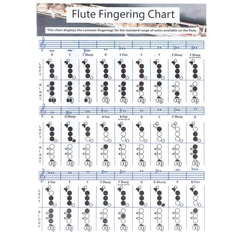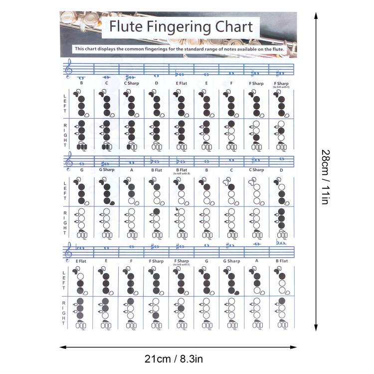 Tabla de Acordes para Flauta de 28x21 cm, Ayuda Didáctica para Principiantes, Accesorio para Instrumento Musical