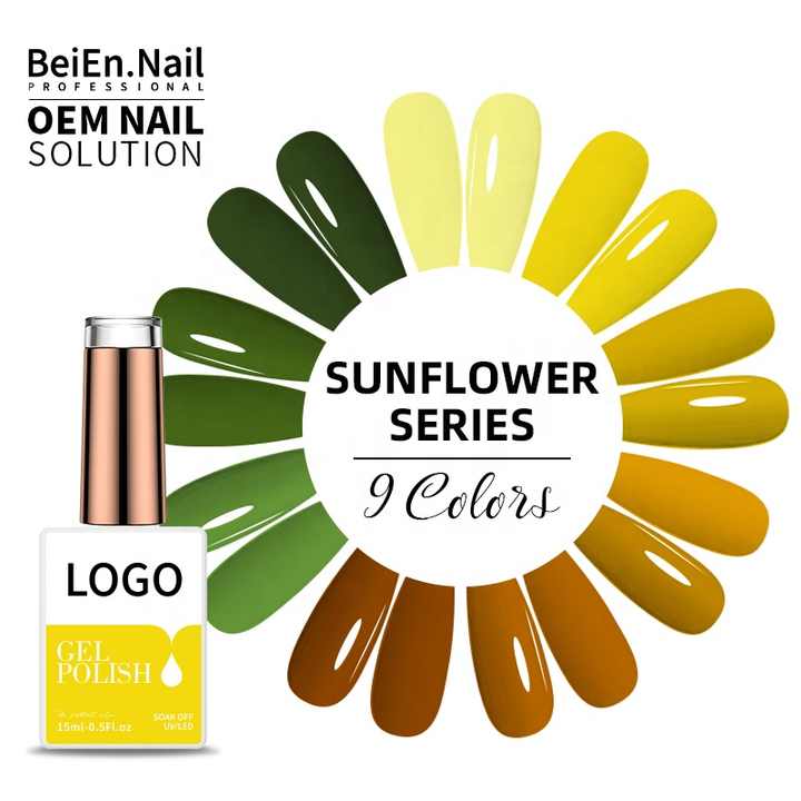 BeiEn personalizado 15ml alto pigmento UV Gel polaco amarillo naranja Color brillante decoración de uñas LED venta al por mayor a granel Kilo OEM y ODM