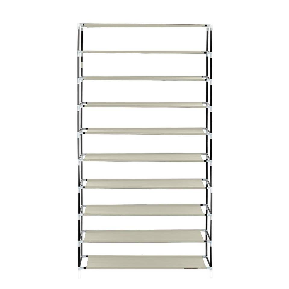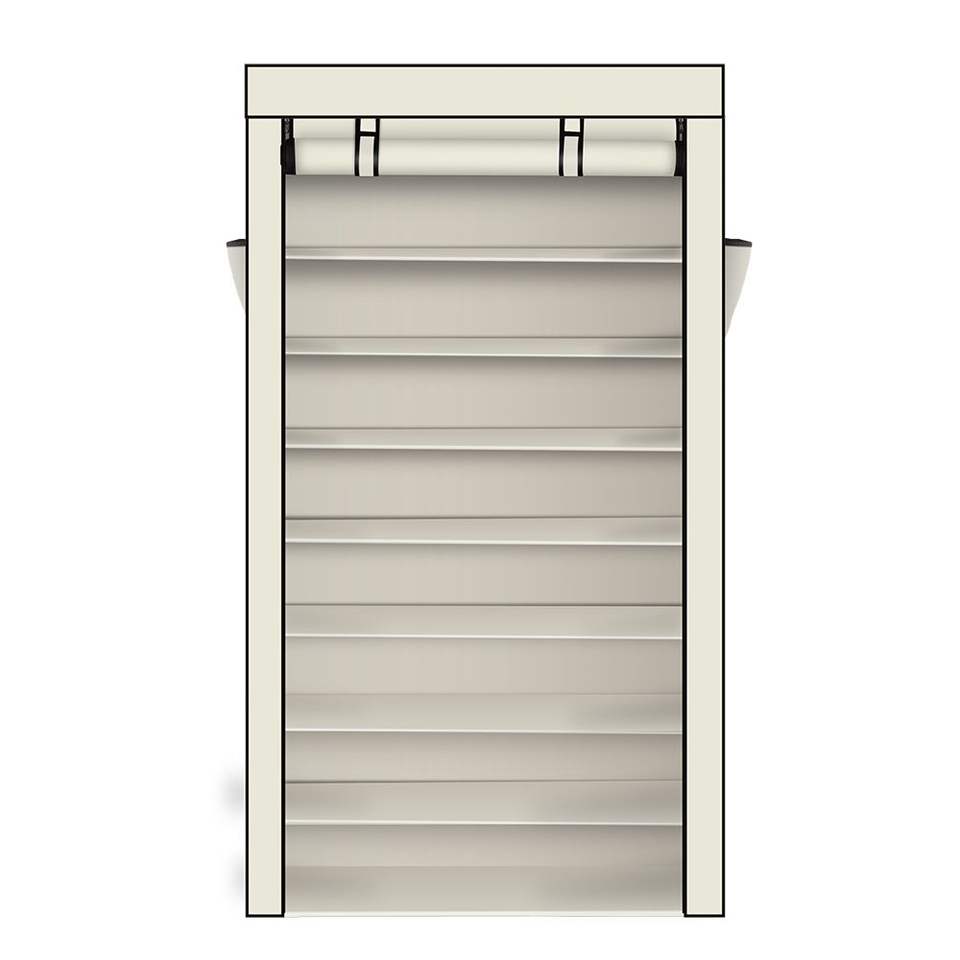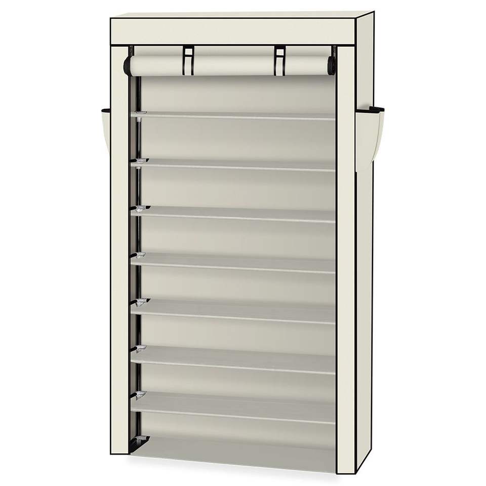 Zapatero beige de 10 niveles con cubierta antipolvo, organizador de armario para almacenamiento de zapatos