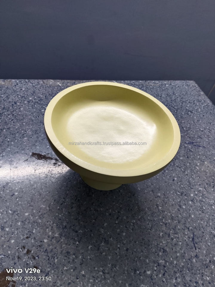 Soporte de exhibición de Pedestal de cuenco decorativo de madera de mango pequeño de cerámica de Color Beige con Base redonda postre Cupcake pastelería caramelo
