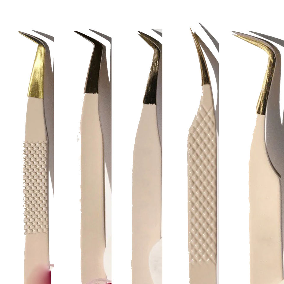 Tweezers Different Handle Beige Color Gold Fiber Tip