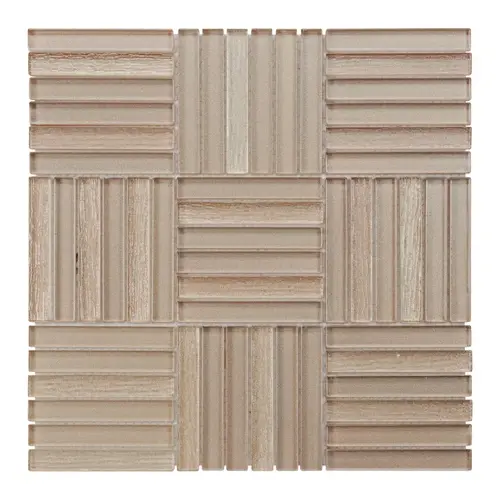 Azulejos de salpicaduras de cocina color crema Beige, mosaico de parquet de Basketweave de vidrio en aerosol frío para Decoración de cocina