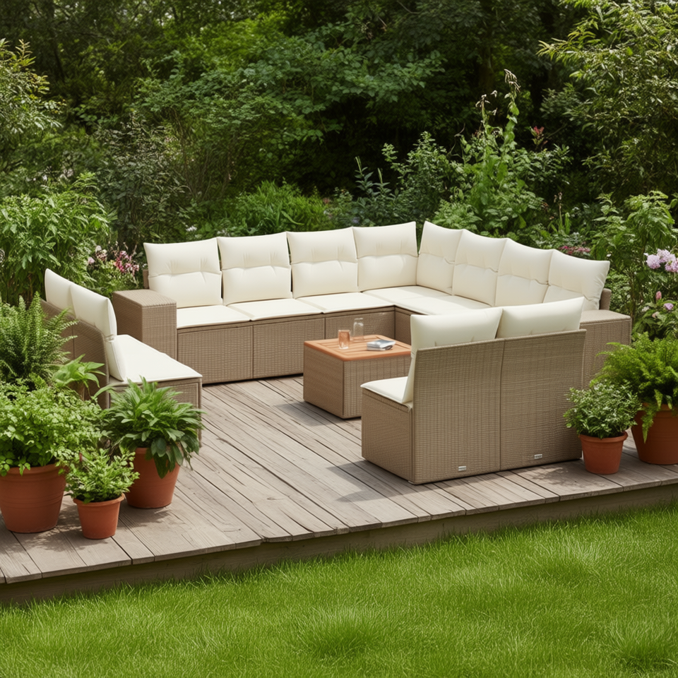 Conjunto de Sofás de Jardín Beige, Muebles de Ratán para Exteriores con Cojines de Espuma de Alta Densidad, Diseño Contemporáneo Impermeable