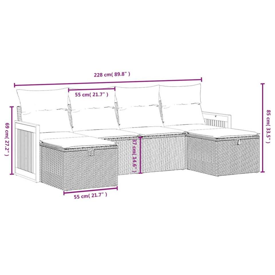 Conjunto de Sofás Modulares de Ratán Sintético PE Beige para Jardín, Conjunto de Sofás Modulares de Ratán Sintético PE para Exteriores