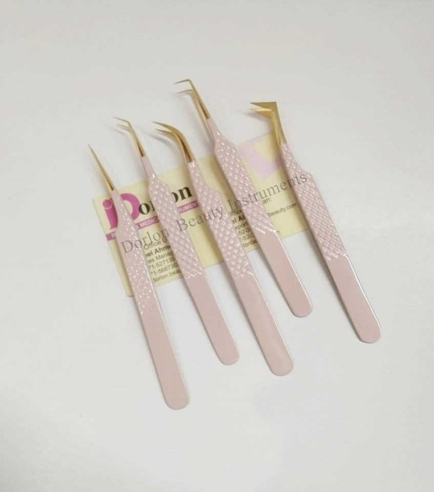 Nombre del producto:Puntas de oro Beige Pink Diamond Grip Pinzas de extensión de pestañas Set