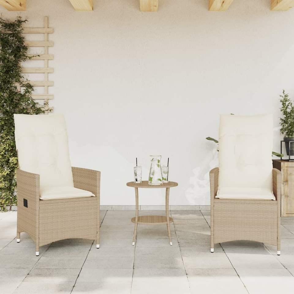 Conjunto de Bistro de 3 Piezas en Poliratán Beige con Cojines, Muebles de Patio