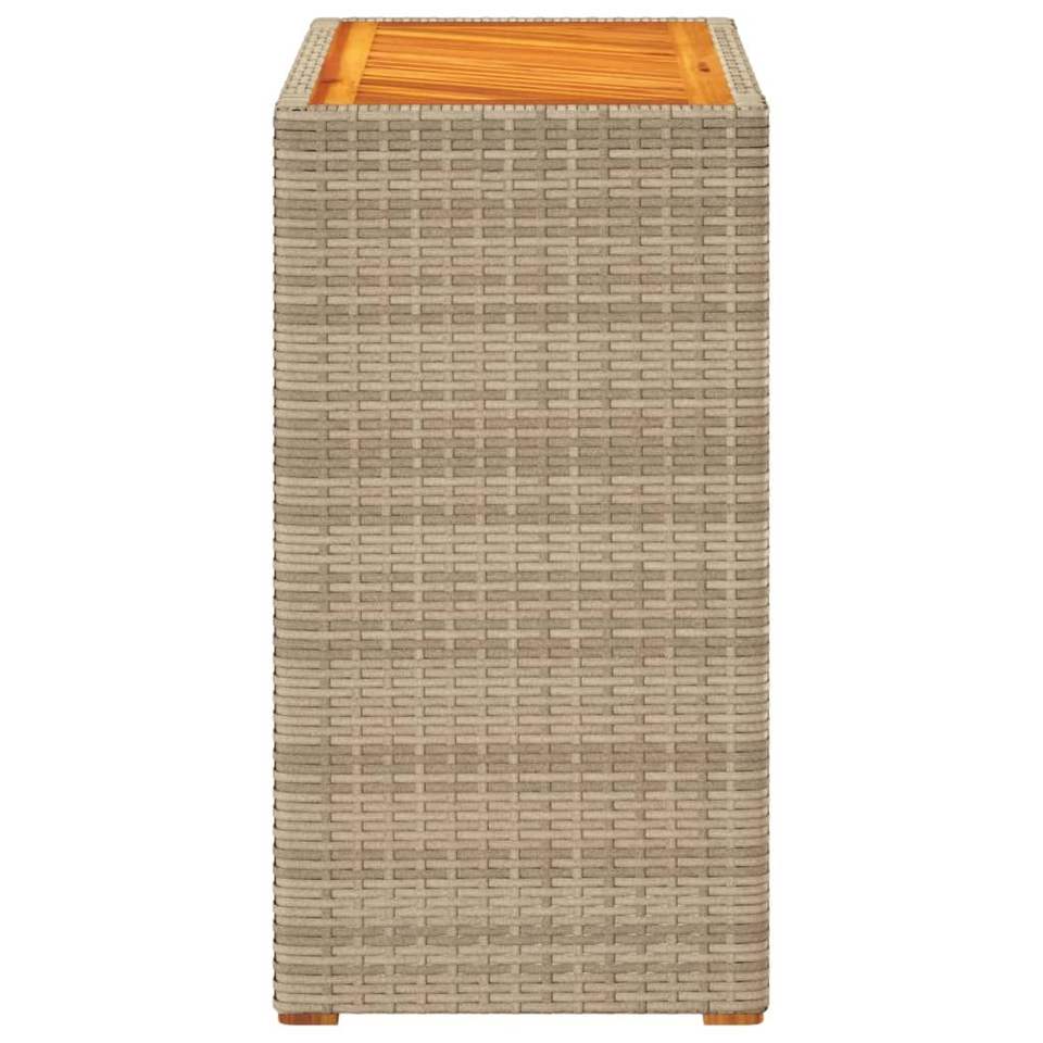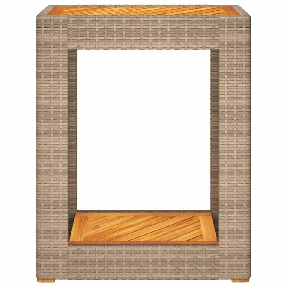 Mesa auxiliar de patio de ratán polivinílico beige con tapa de madera 23,6 "x 15,7" x 29,5 "Mesas para exteriores