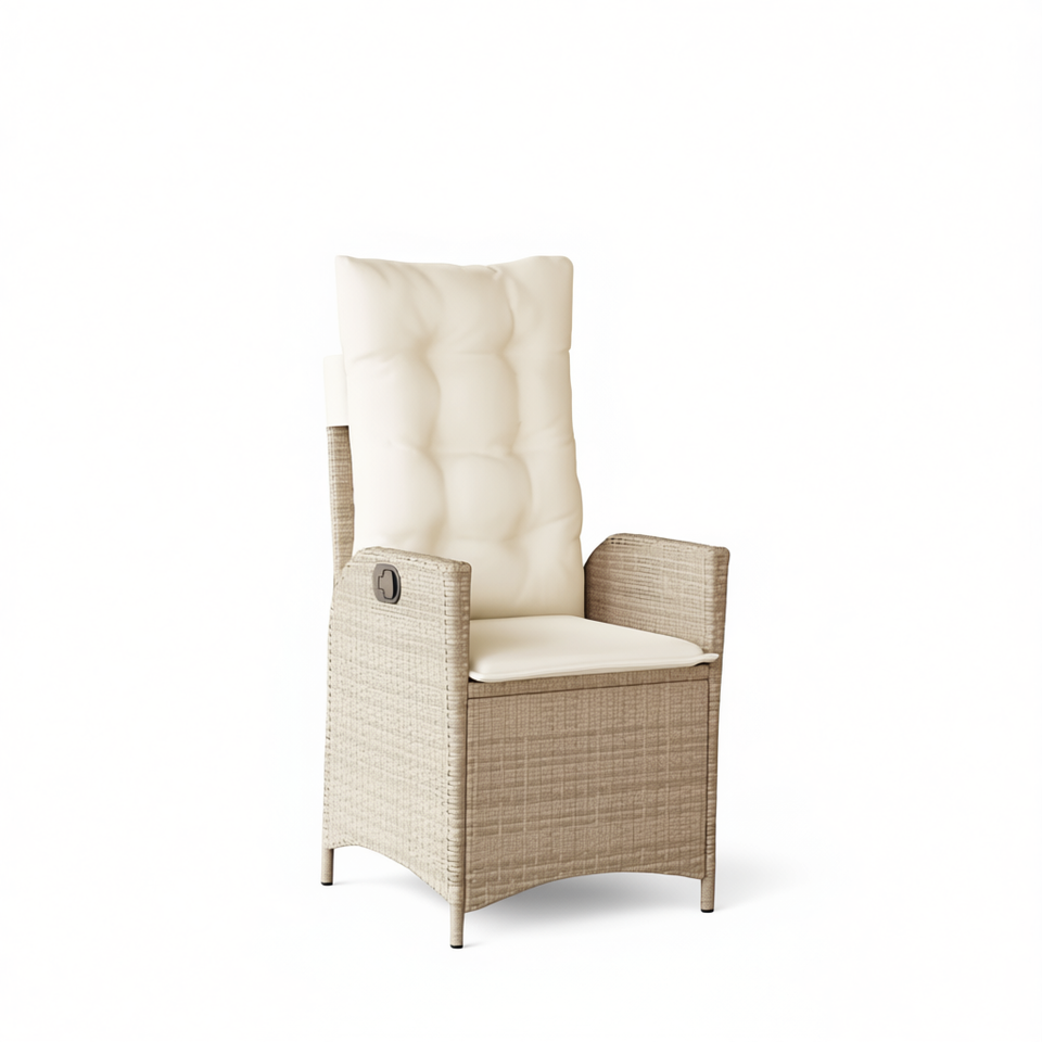 Silla Reclinable de Patio de Ratán Sintético Beige con Cojines, Silla de Jardín para Exteriores, Estilo Contemporáneo