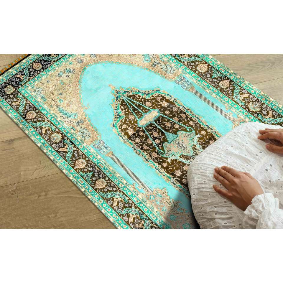 Alfombra de Oración Beige: Diseño Otomano, Lavable a Máquina, Alfombra Estampada, Alfombra Delgada No Tejida