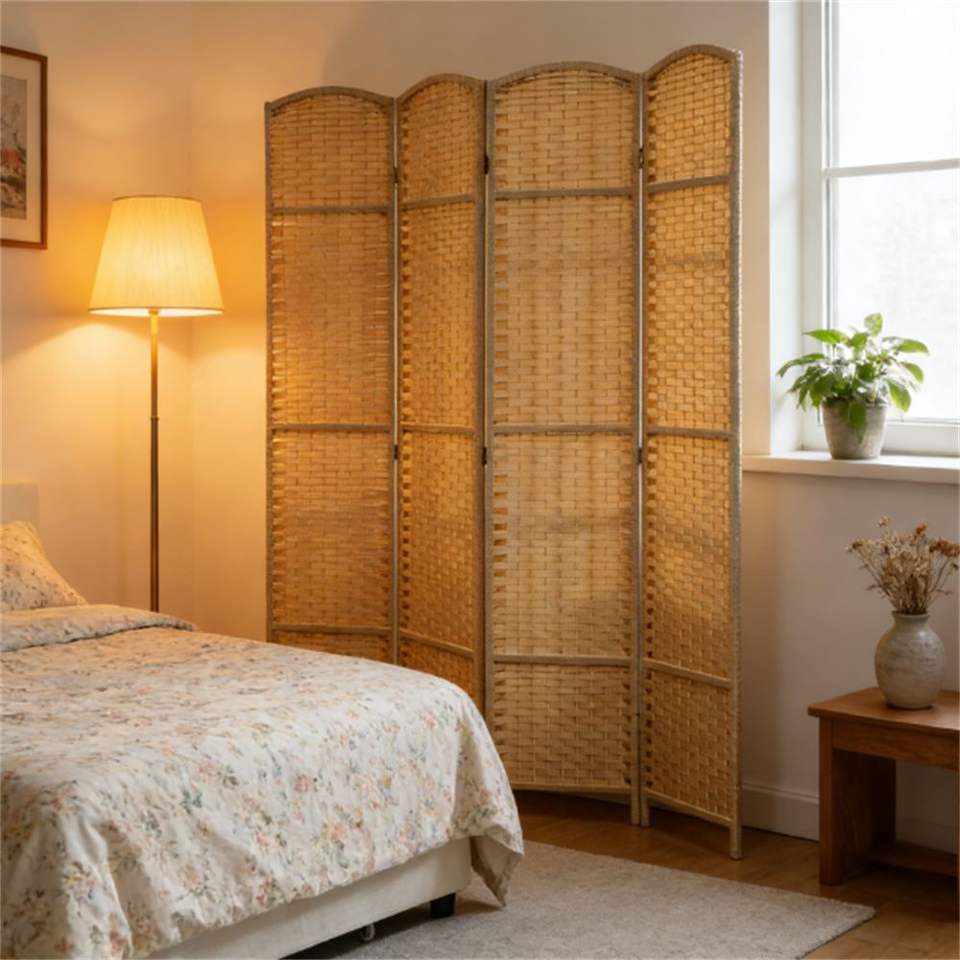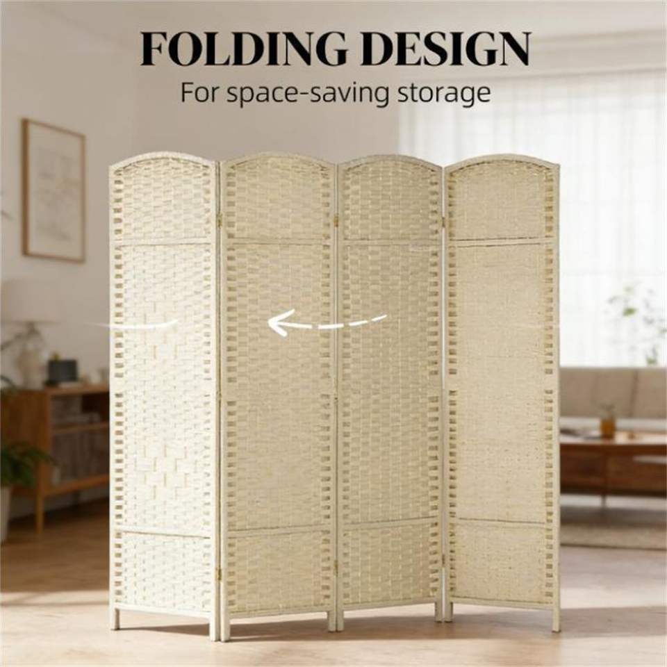 Juego de 4 Biombos Divisores de Espacios Beige, Elegantes Pantallas y Separadores