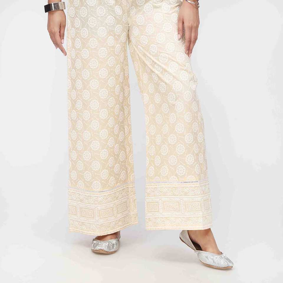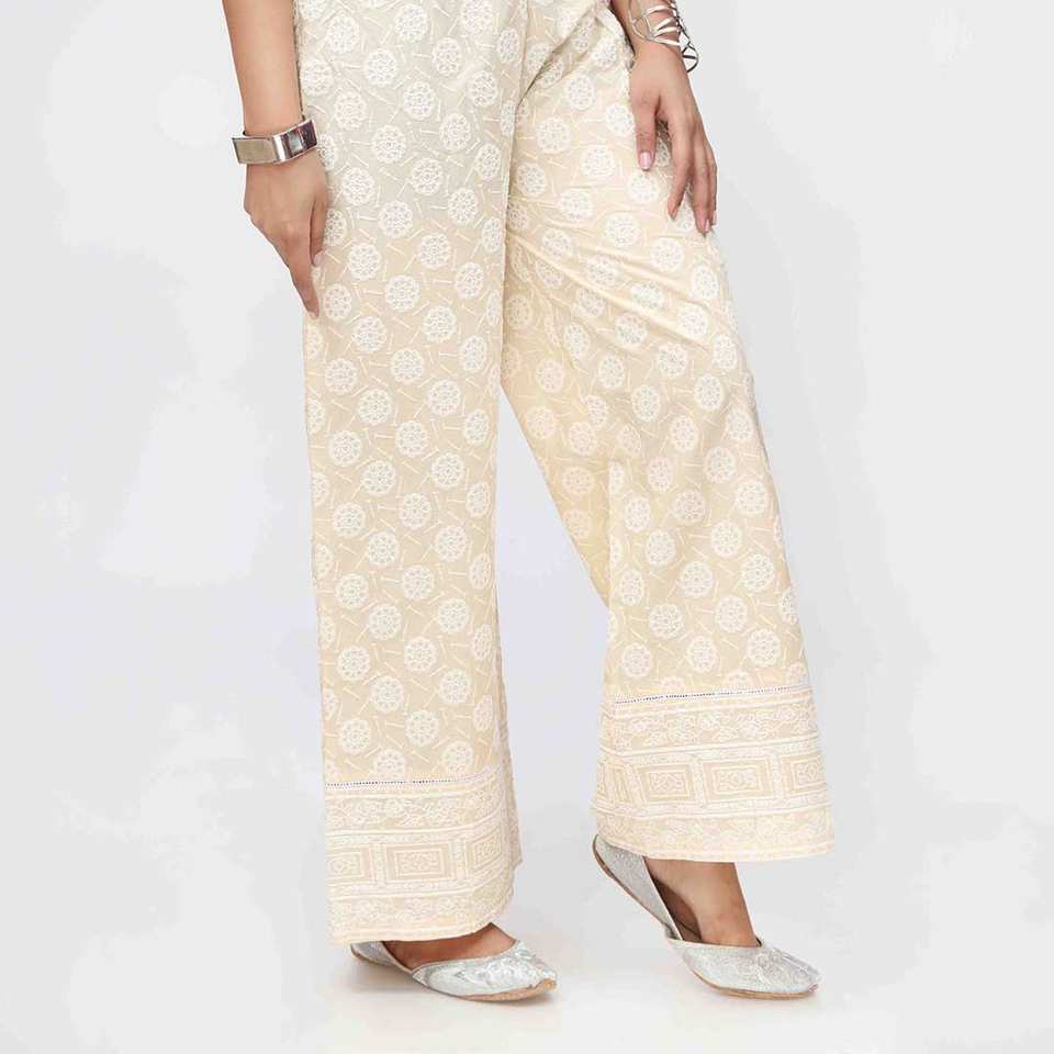 Pantalón Cambric Estampado Puff Beige PW3589 Talla XS