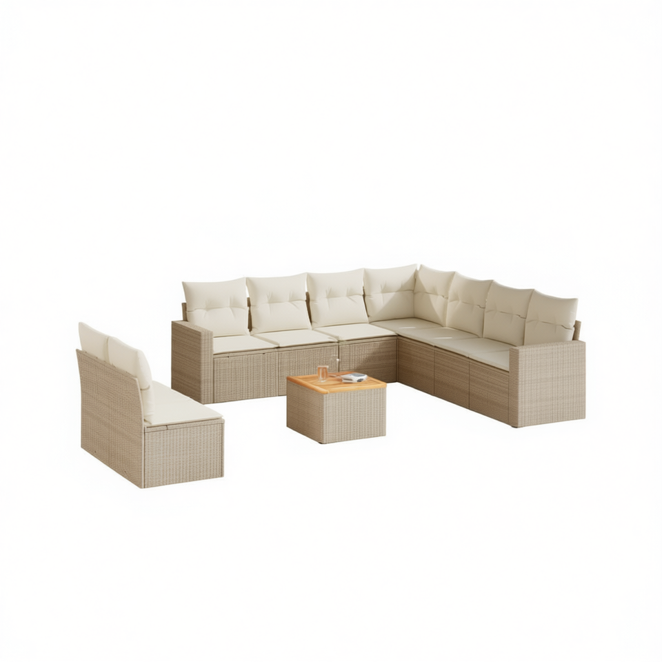 Conjunto de Sofás de Jardín de Ratán Beige, 6 Plazas, Muebles de Exterior, Diseño Contemporáneo