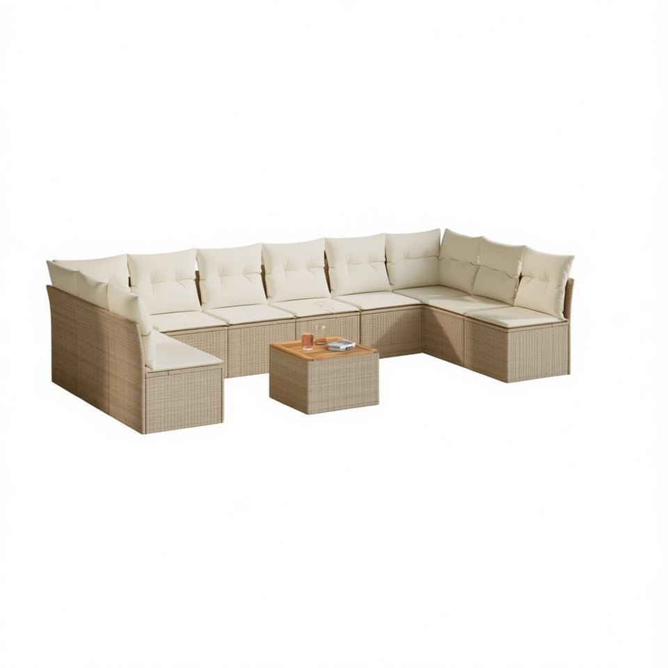 Conjunto de Sofás de Jardín de Ratán Beige para 6 Personas, Muebles de Exterior Resistentes a la Intemperie, Diseño Contemporáneo
