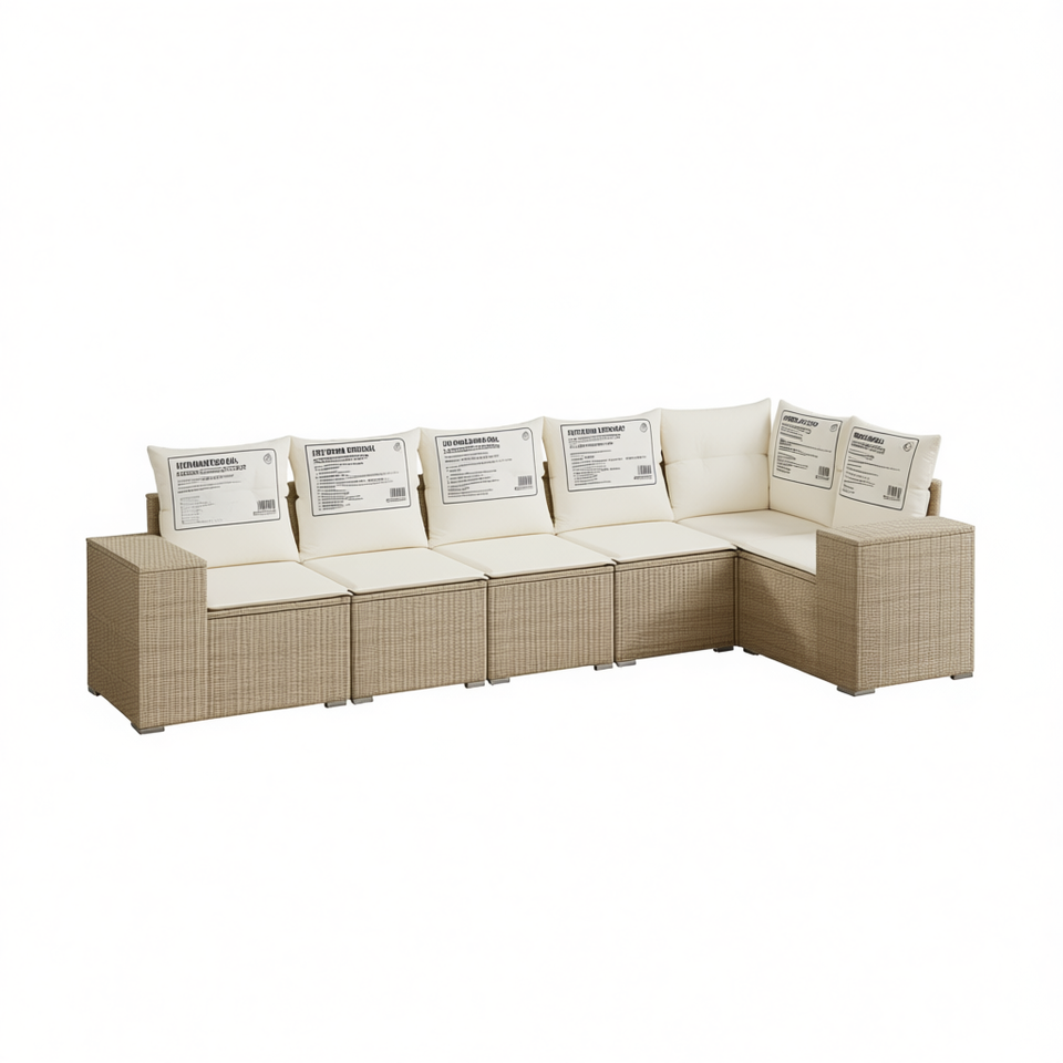 Conjunto de Sofás de Jardín de Ratán Beige, 6 Plazas, Resistente a la Intemperie, Diseño Contemporáneo