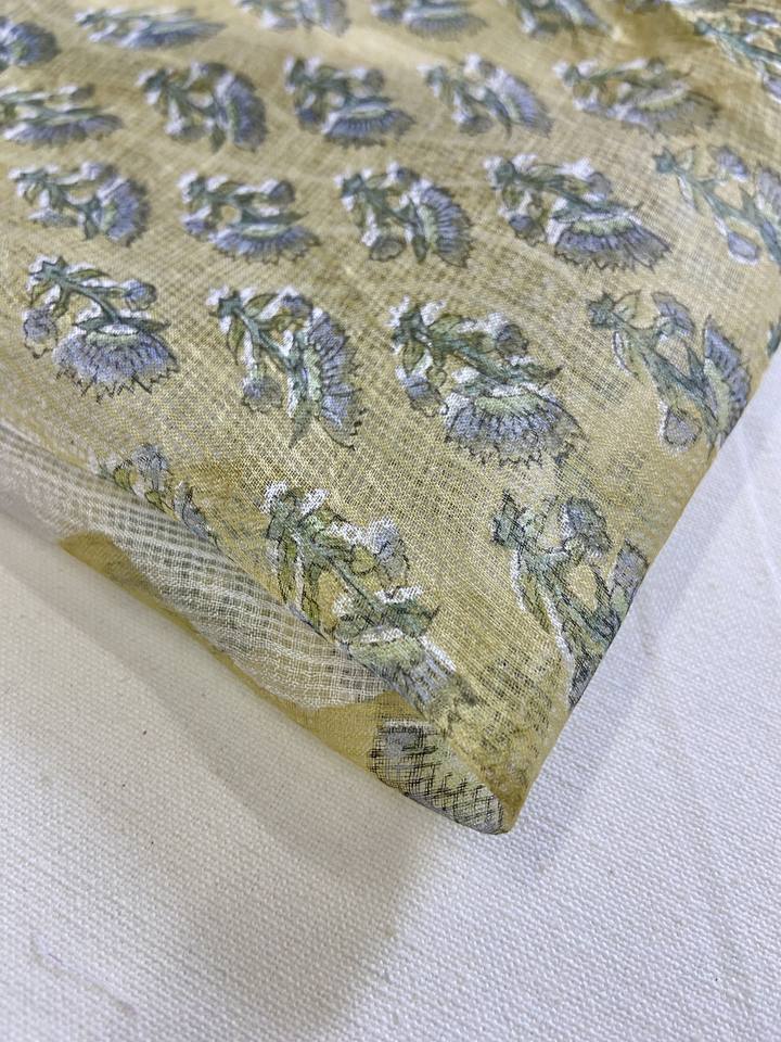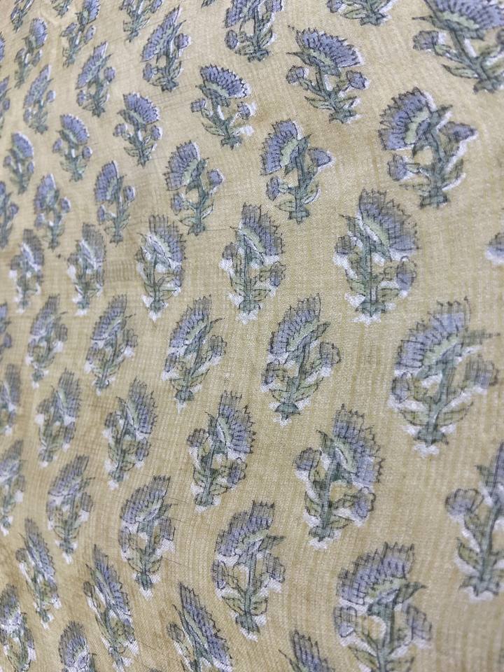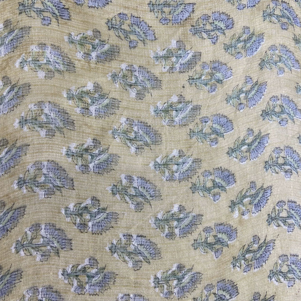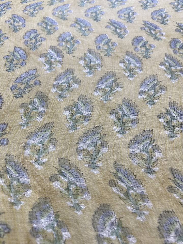 Tela de Algodón Beige Pequeña con Estampado Floral Minimalista Hecho a Mano
