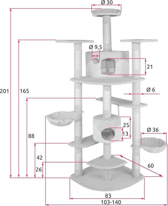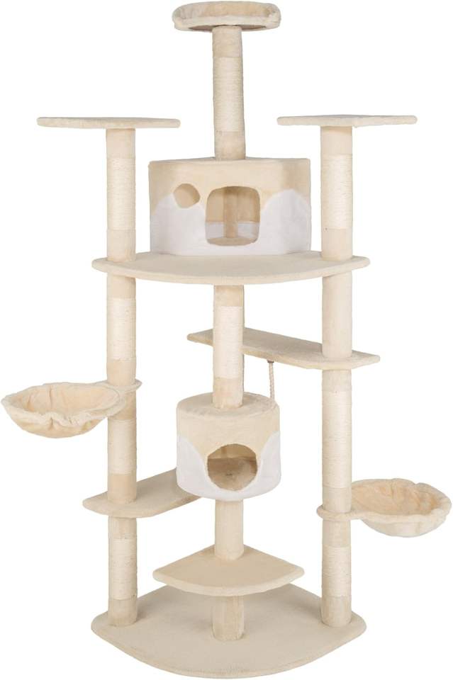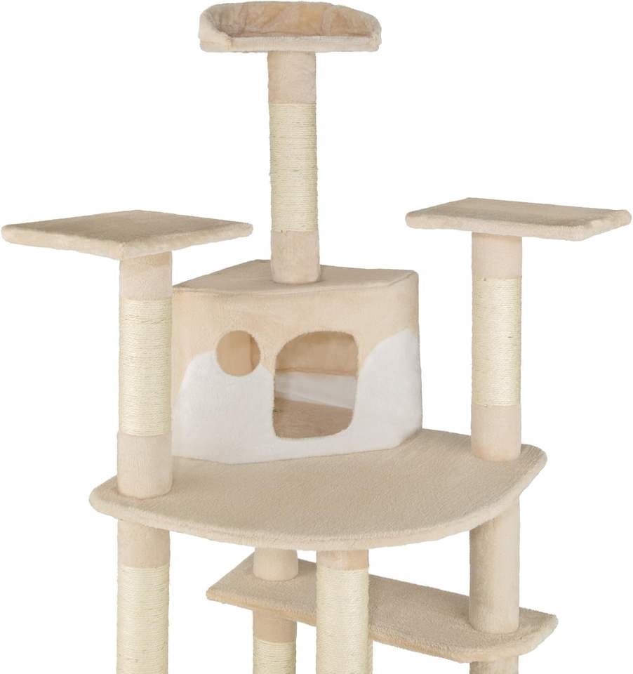 Árbol de poste para rascar gatos ajustable blanco beige con 2 casas y 4 plataformas conos y cable incluidos