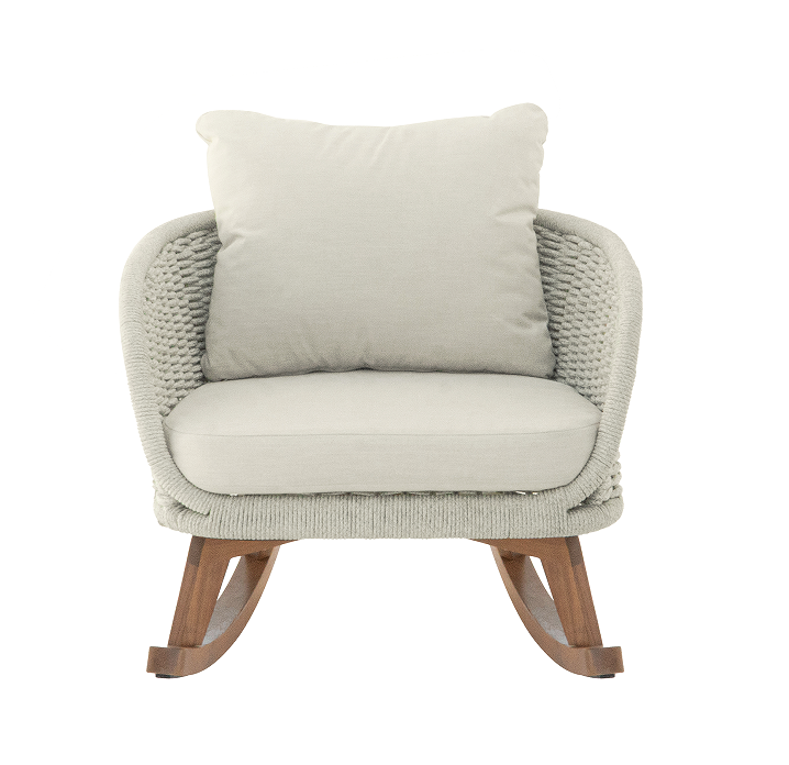 Silla Mecedora de Mimbre Beige con Cojines Suaves de Poliéster y Estructura de Madera Resistente, Muebles de Jardín Portátiles para Exteriores