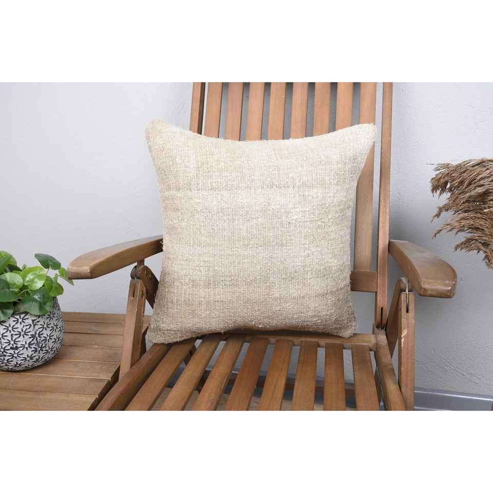 Alfombra de granja de lana Beige de 18x18 pulgadas, diseño rústico, almohada tejida, patrón Vintage, antideslizante, ecológico, extraíble y lavable