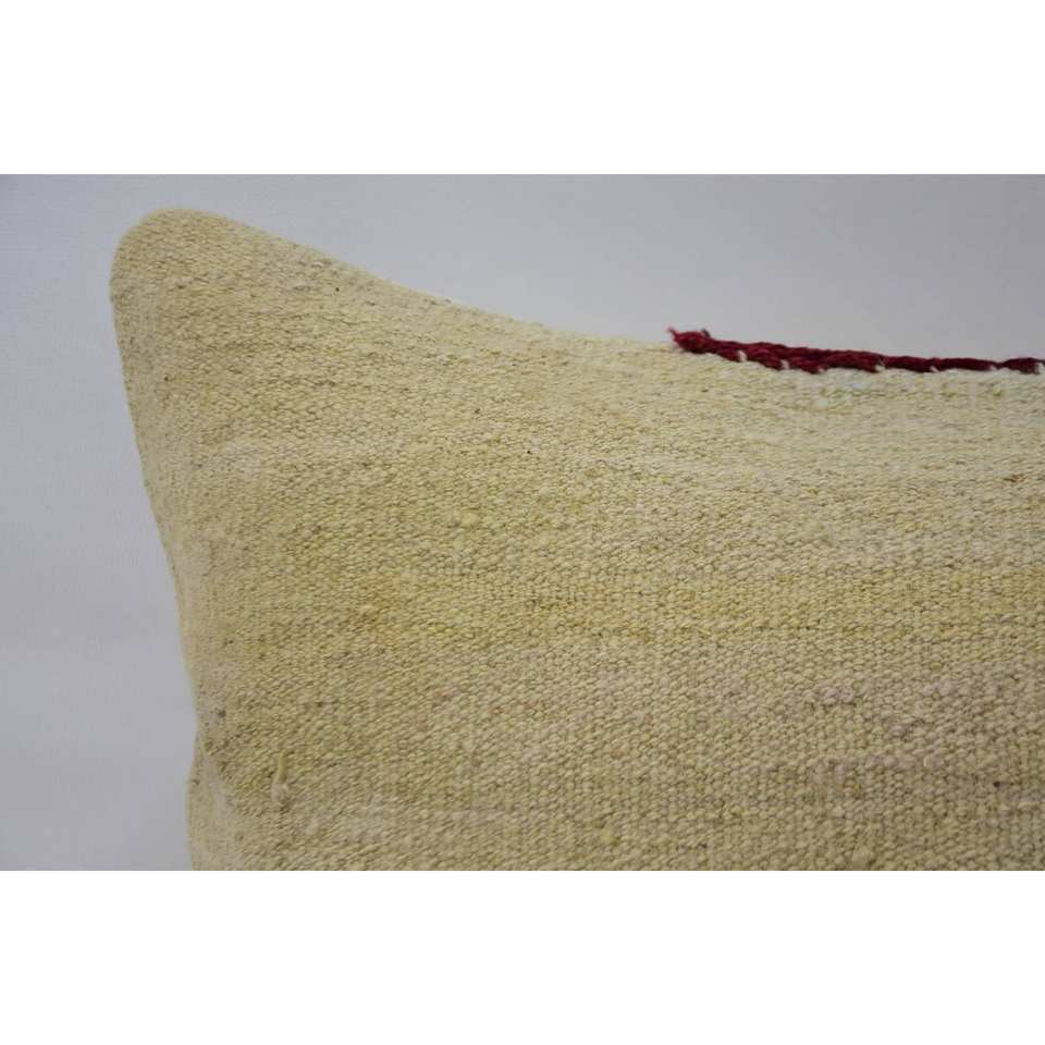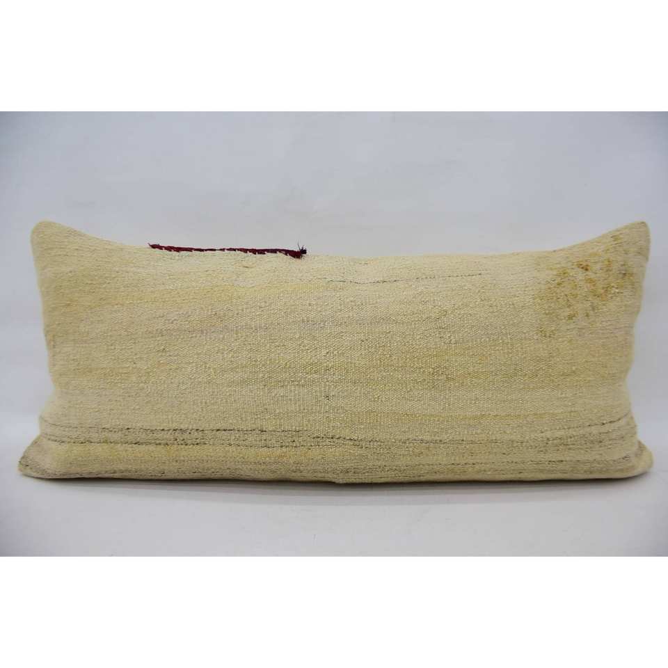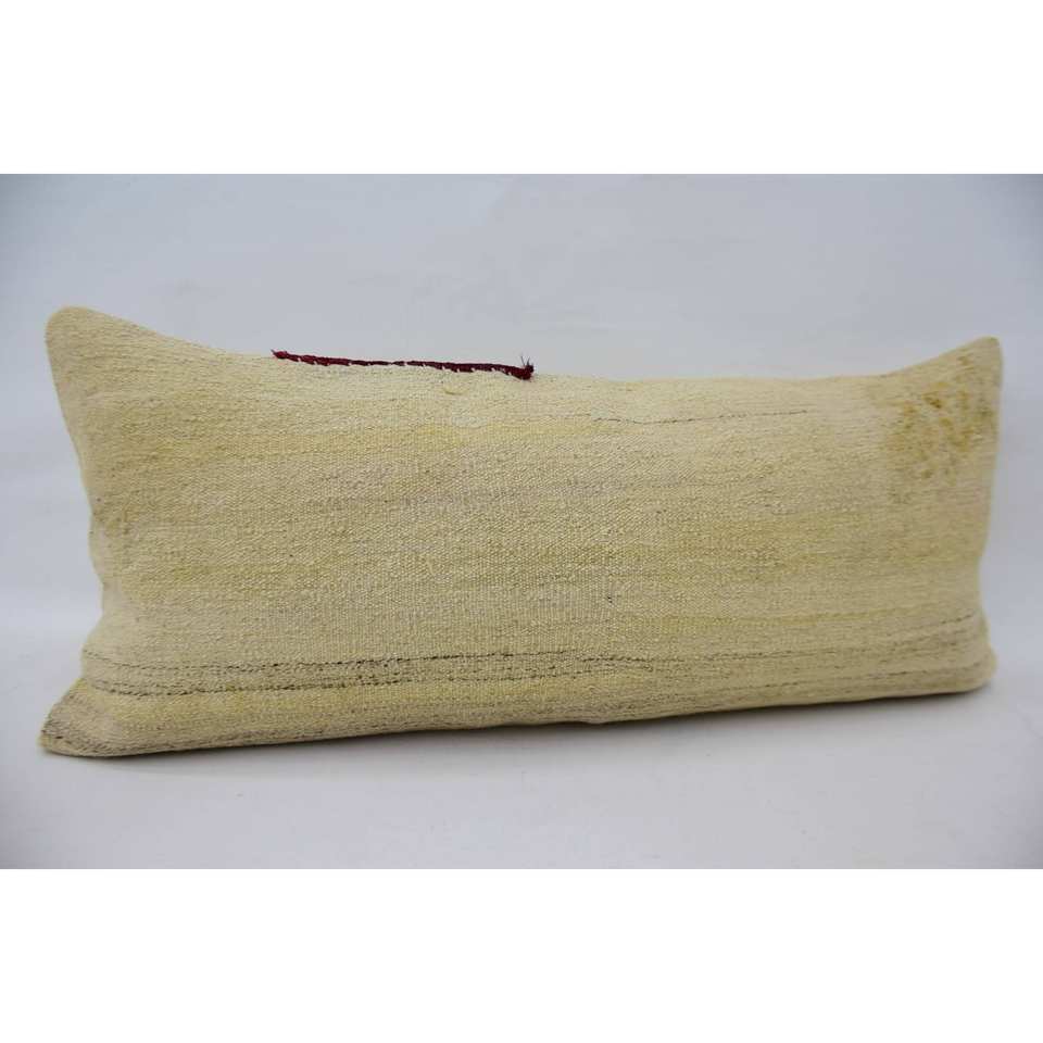 Alfombra Kantha de lana beige Almohada estampada vintage tejida de 16x36 pulgadas
