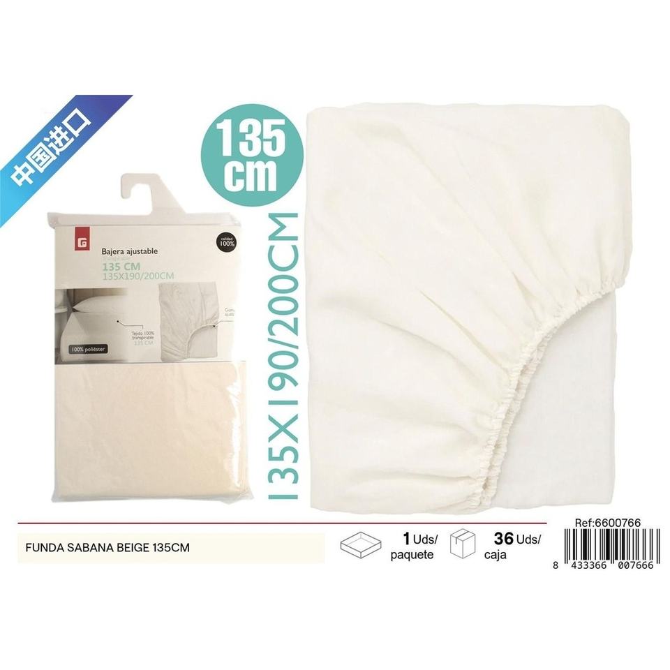 Funda sábana beige 135 cm-Ropa de cama