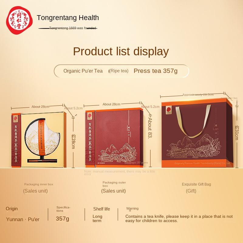 Beijing Tongrentang Ripe Pu-erh Tea Té oscuro Té saludable Ayuda a la digestión Alivia la sensación de grasa Regalo de bienestar