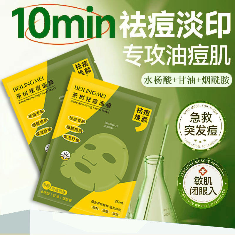Mascarilla Facial Beilingmei de Árbol de Té para Eliminar el Acné 25ml Tratamiento para el Acné en Piel Grasa y Mixta