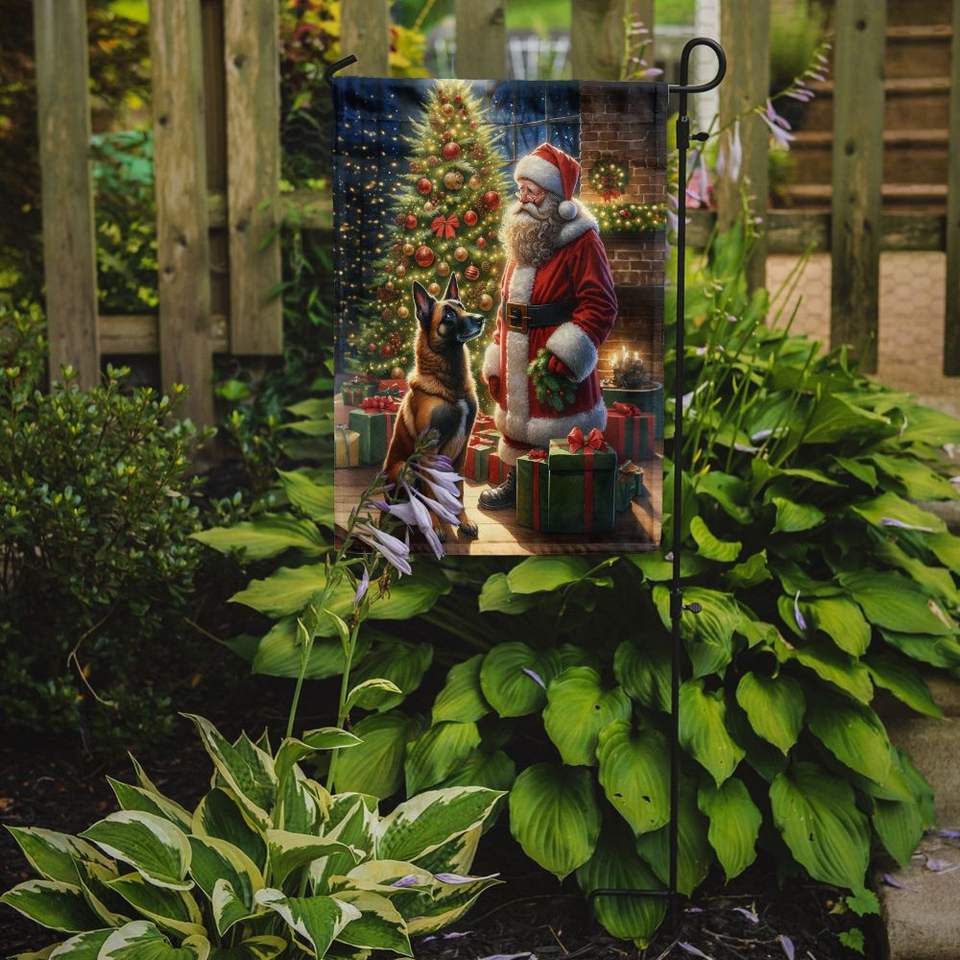 Bandera de jardín de Papá Noel Malinois belga, letrero decorativo Multicolor para patio, arte para patio, camas de flores, buzón
